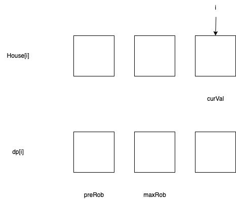 curVal: 현재 집의 금액maxRob: 현재 집까지 털었을 때의 최대 금액preRob: 바로 이전 집까지 털었을 때의 최대 금액