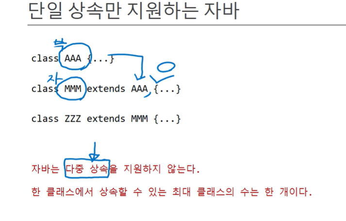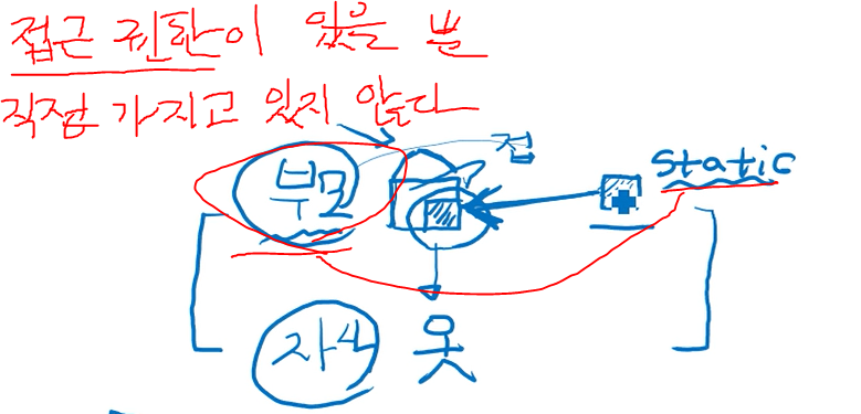 static 변수/메소드(클래스 변수/메소드)가 선언된 클래스에는 접근 권한이 있을 뿐 직접 가지고 있지 않다. 하위 클래스는 직접 상속 받지 않지만 접근할 권한은 가지고 있다. 부모가 가지고 있지 않으니 자식도 상속 받지 못한다고 생각하자.