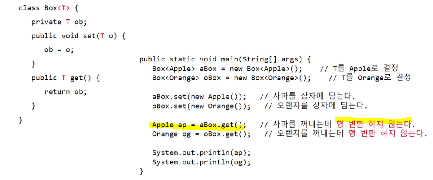 - 매개변수화 타입(인자를 전달 받아서 새로 만들어진 타입)= Box<Apple>