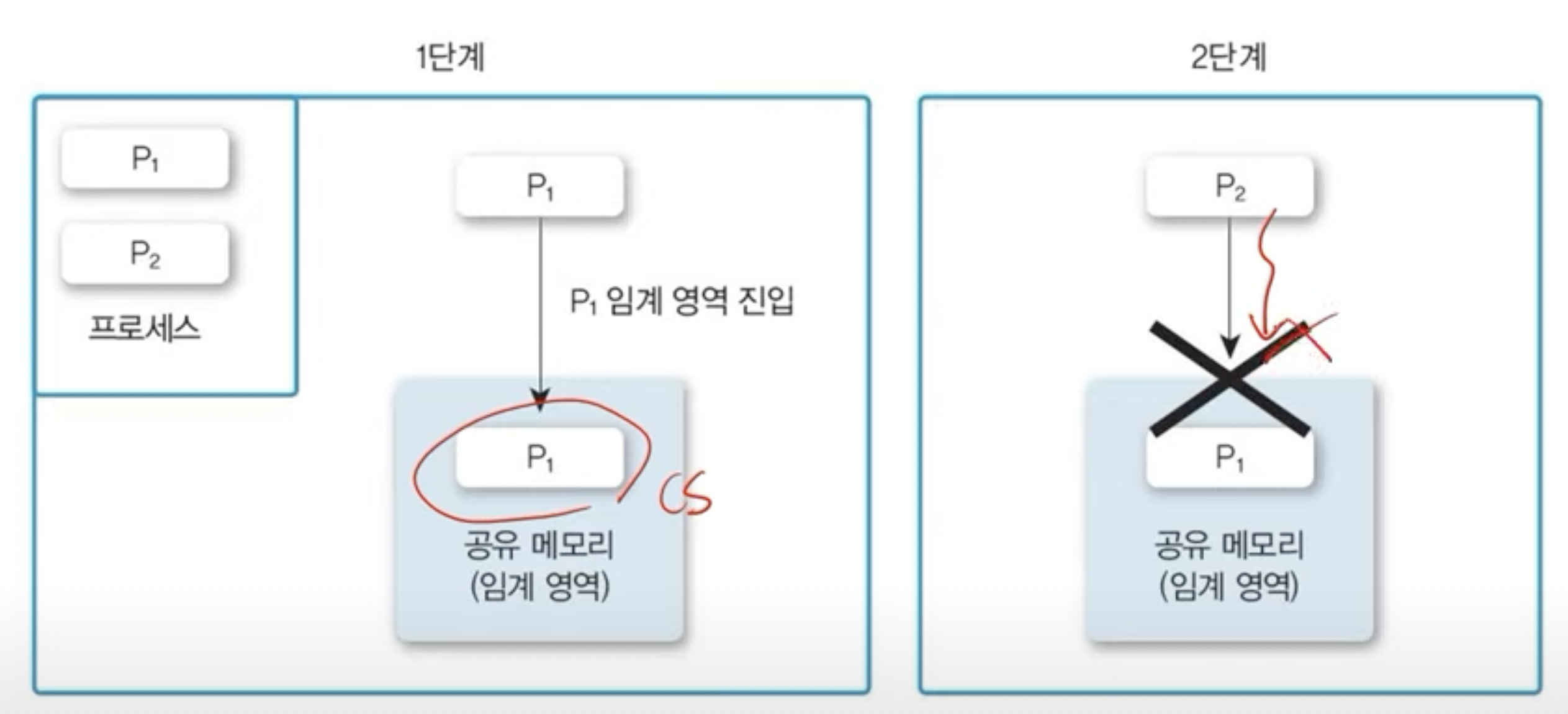 둘 이상 프로세스 동시에 critical section에 진입하는 것을 막는다.