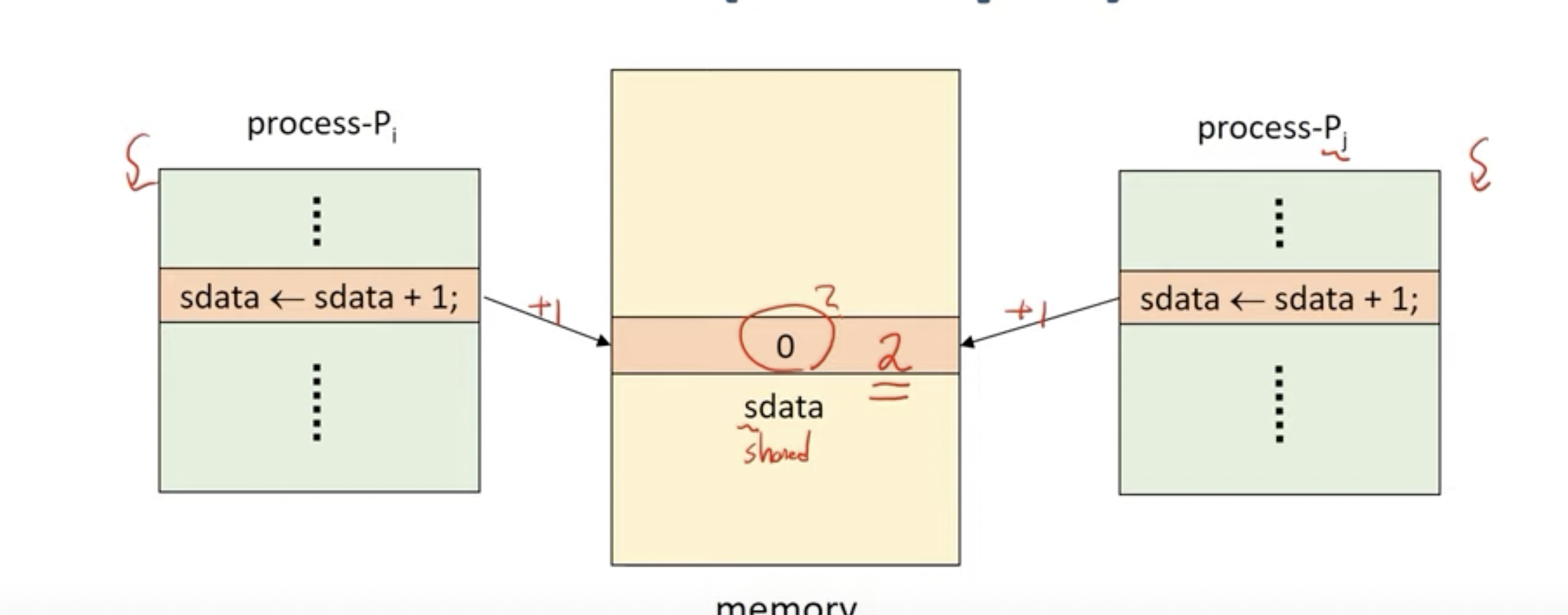 - 병행 수행 중인 비동기적 프로세스들이 자원을 공유-> 문제 발생 가능성