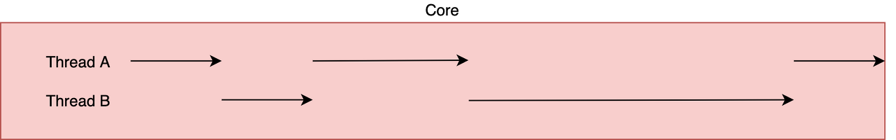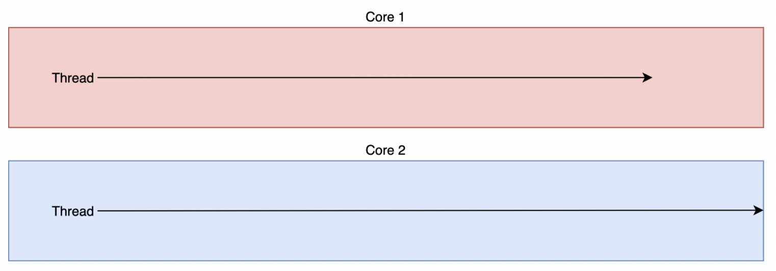 - 각 코어 내에 스레드가 실제로 동시에 명령 실행