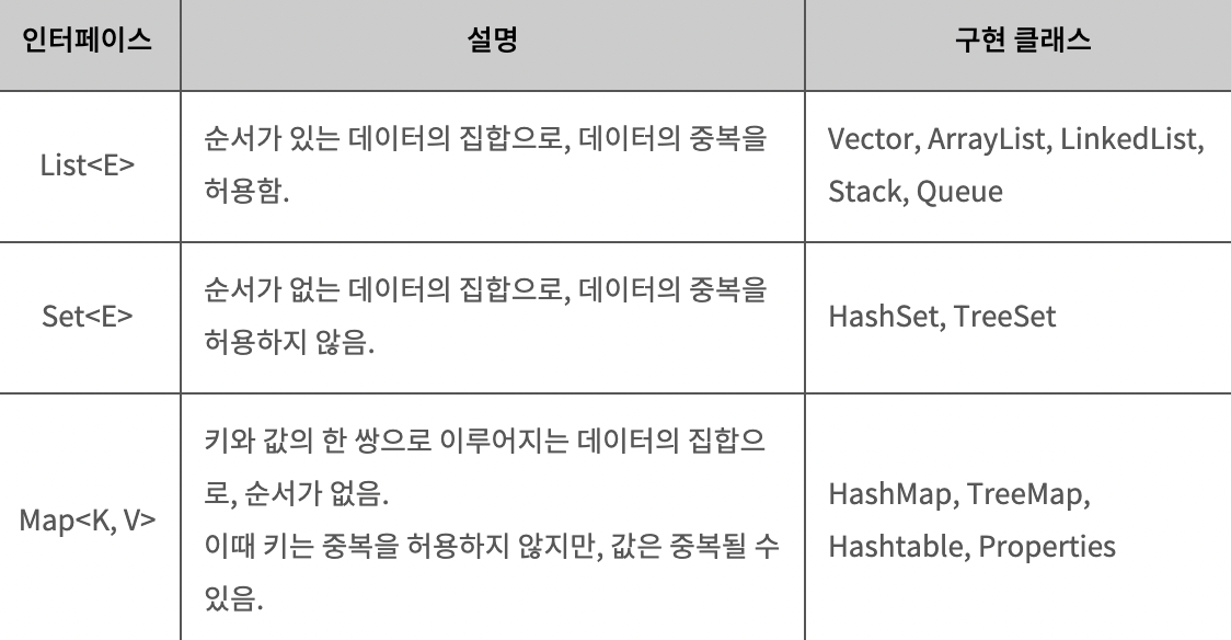 - Java에서는 Collection이란 데이터의 집합, 그룹을 의미