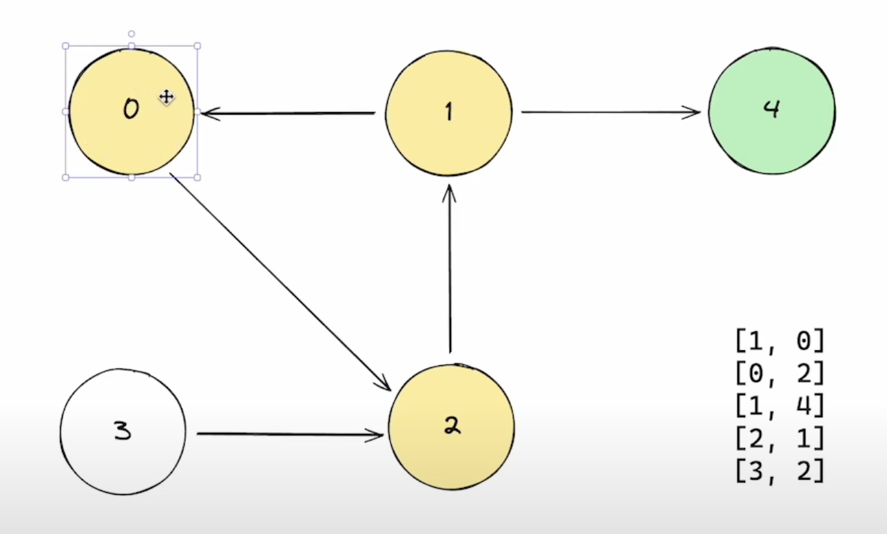 For example, the pair [0, 1], indicates that to take course 0 you have to first take course 1.