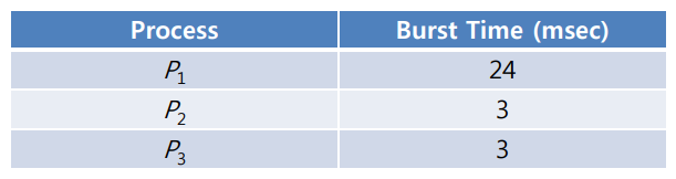 CPU 실행시간 많이 필요한 프로세스가 먼저 서비스받으면 나머지들은 오랫동안 기다리는 모습이 시중들이 따라다니는 모습 같아서 호위 효과라고 한다(단점). - FCFS는 Non-Preemptive Scheduling