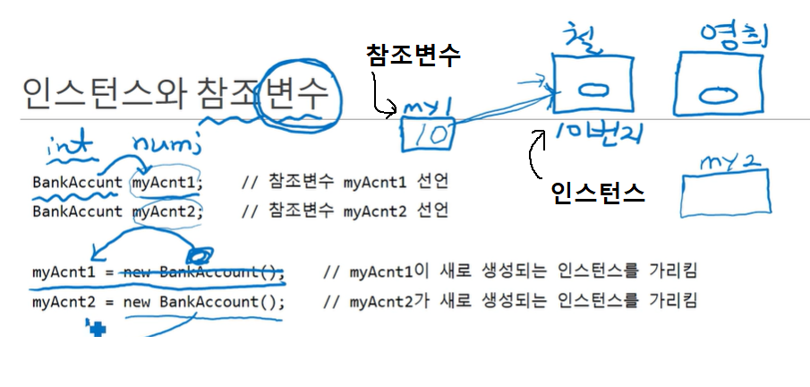 인스턴스(instance)는 클래스를 new 명령문으로 메모리에 생성한 객체이다. 설계도를 통해 독립적인 객체를 만든 것이다. 인스턴스는 모두 메모리 공간을 차지한다.
