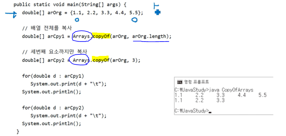 Arrays.copyOf 가 요소를 복사할 뿐만 아니라 새 배열도 생성한다는 것입니다.