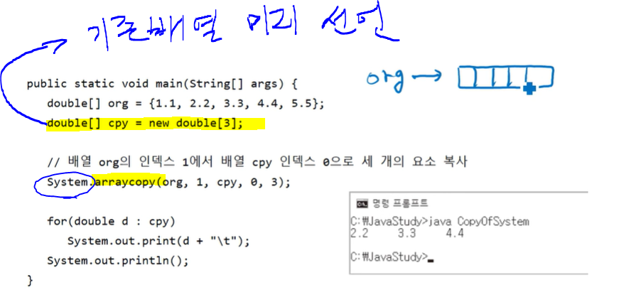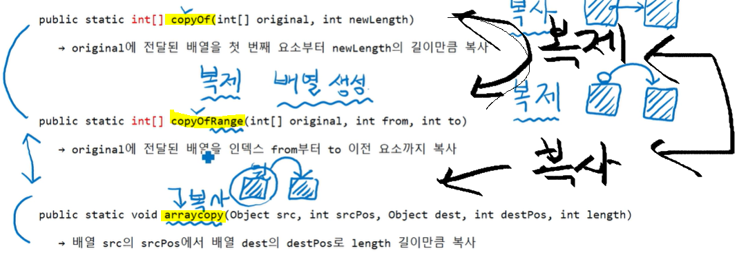 System.arraycopy 는 기존 배열로 복사합니다(주의! 기존 배열이 미리 선언되어야 한다).