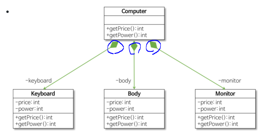 즉, 전체-부분 관계를 갖는 객체들 사이의 관계를 정의할 때 유용하다.