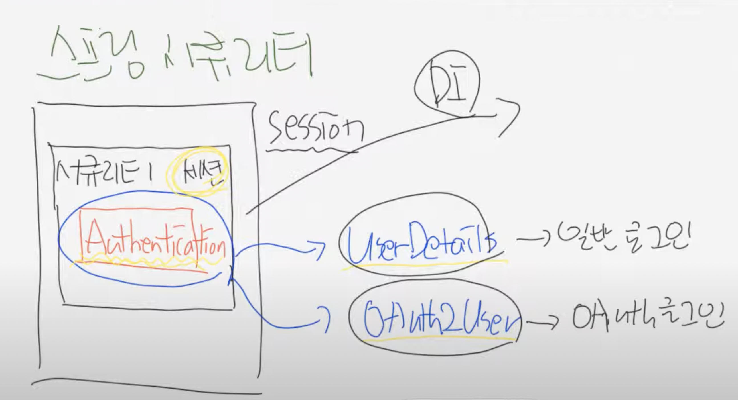- 세션 영역 안에는 시큐리티 세션 영역이 존재핸다.