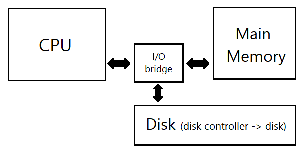 CPU, Main Memory(Primary Memory), Disk(Secondary Memory)