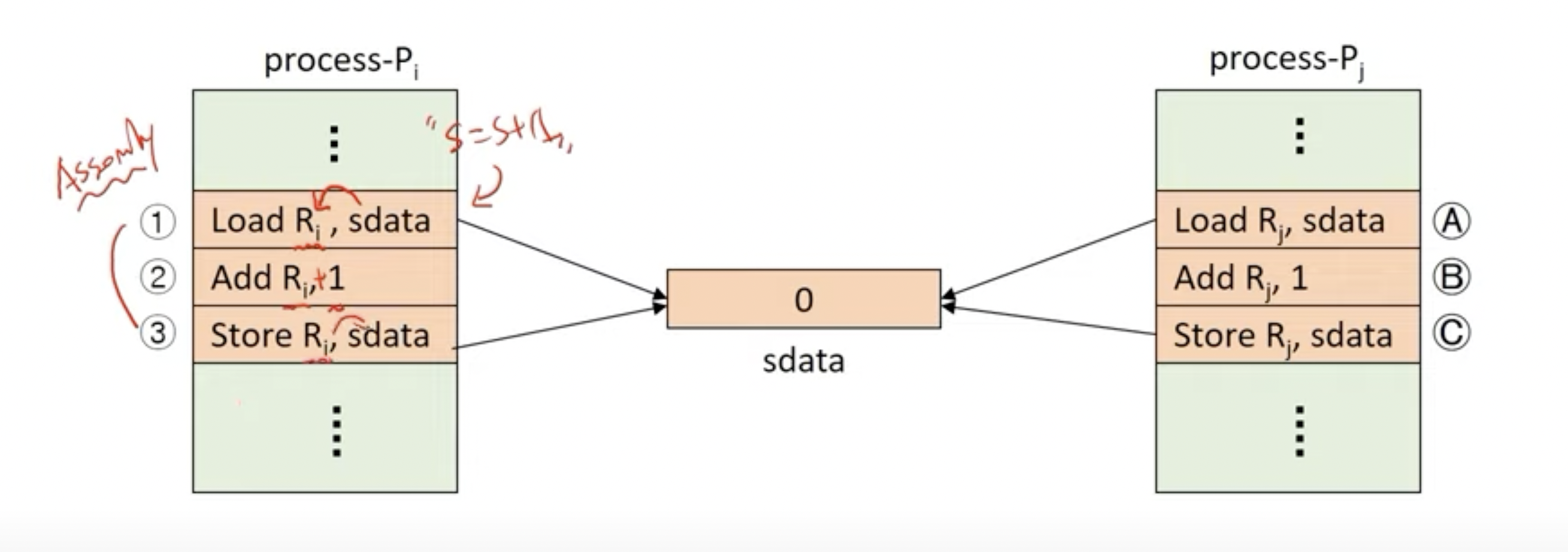 critical section 실행되는 동안, sdata에 접근하려는 다른 프로세스 진입 막는다.